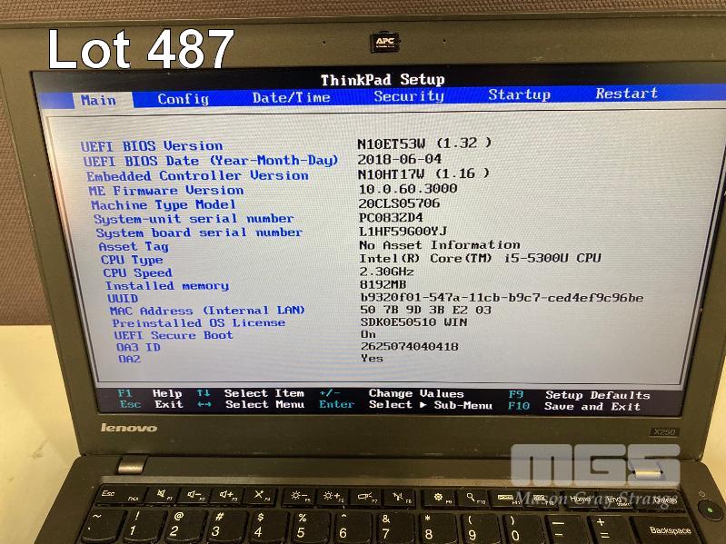 LAPTOP, LENOVO THINKPAD X250 (20CLS05706), CORE i5 5300U (5TH GEN) @ 2.3GHz, 8GB DDR3 RAM, 500GB SATA HDD, 12.5" WIDESCREEN (1366x768), INTEL HD VIDEO, Wi-Fi, BLUETOOTH, WINDOWS 10 PRO INSTALLED & POWER SUPPLY (NOTE: MARKS ON SCREEN) S/N:PC083ZD4