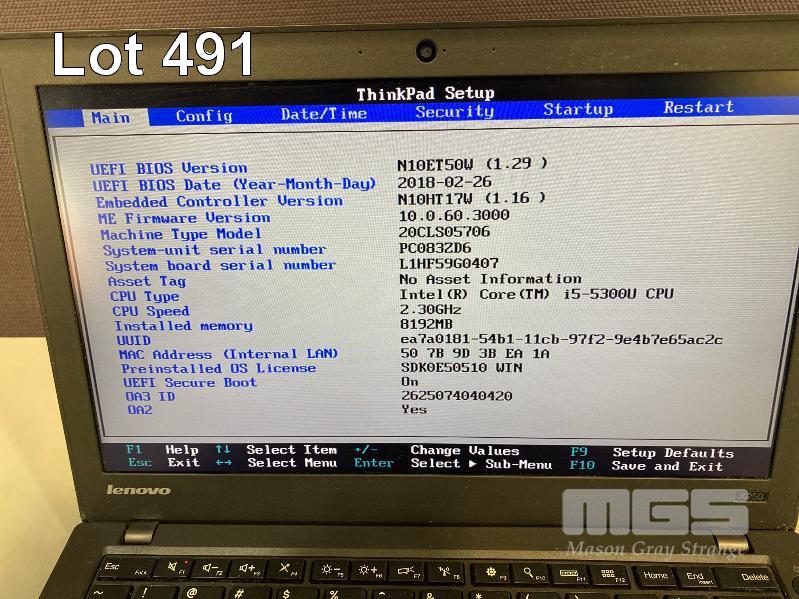 LAPTOP, LENOVO THINKPAD X250 (20CLS05706), CORE i5 5300U (5TH GEN) @ 2.3GHz, 8GB DDR3 RAM, 500GB SATA HDD, 12.5" WIDESCREEN (1366x768), INTEL HD VIDEO, Wi-Fi, BLUETOOTH, WINDOWS 10 PRO INSTALLED & POWER SUPPLY (NOTE: MARKS ON SCREEN, WHITE SPOT SCREEN BLEMISH) S/N:PC083ZD6
