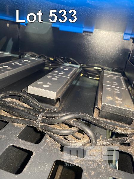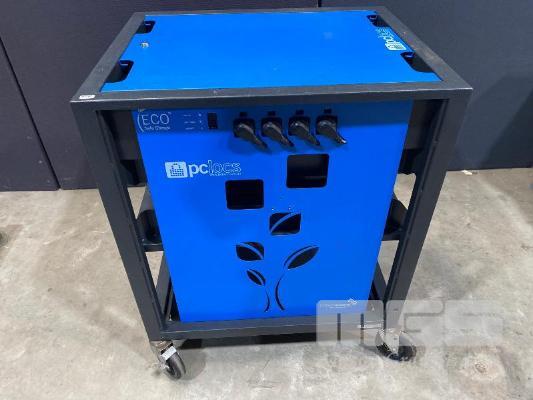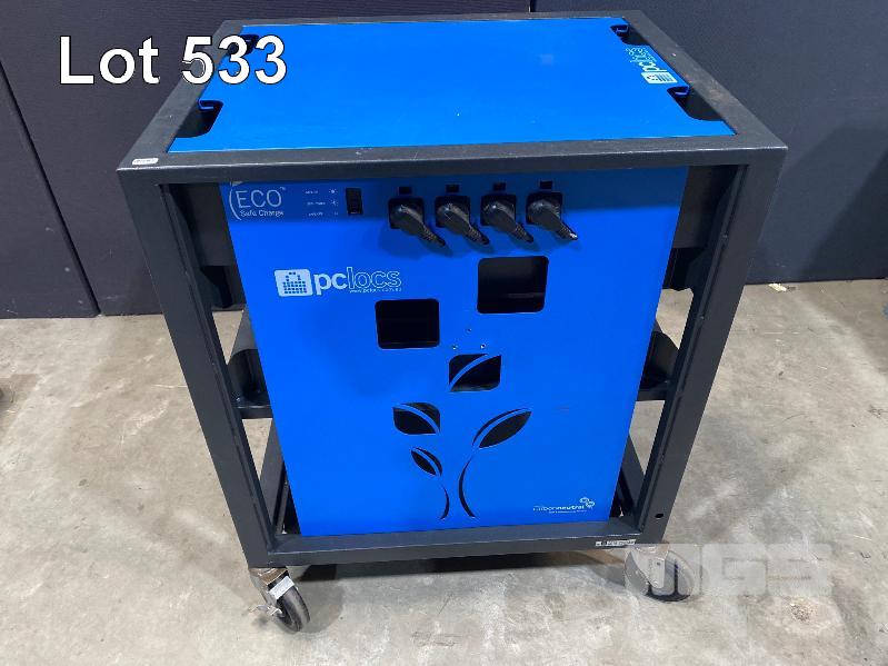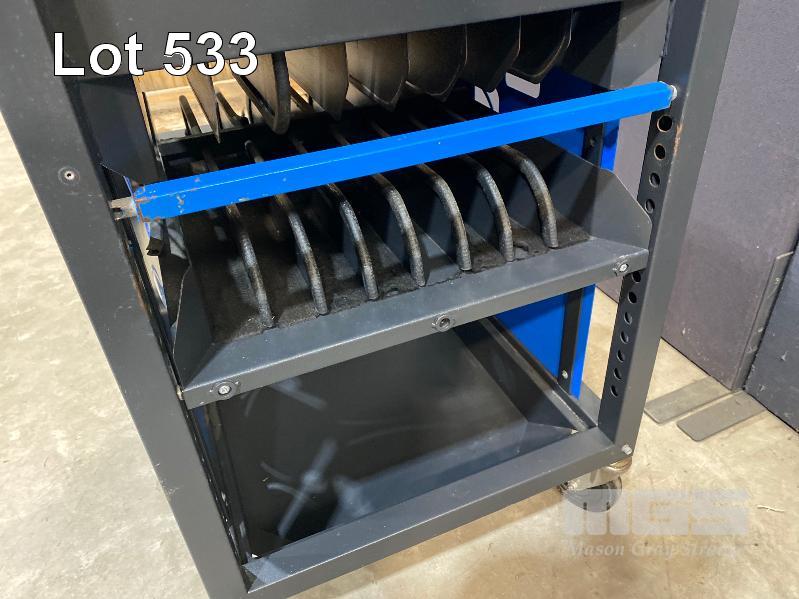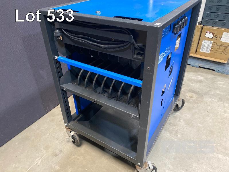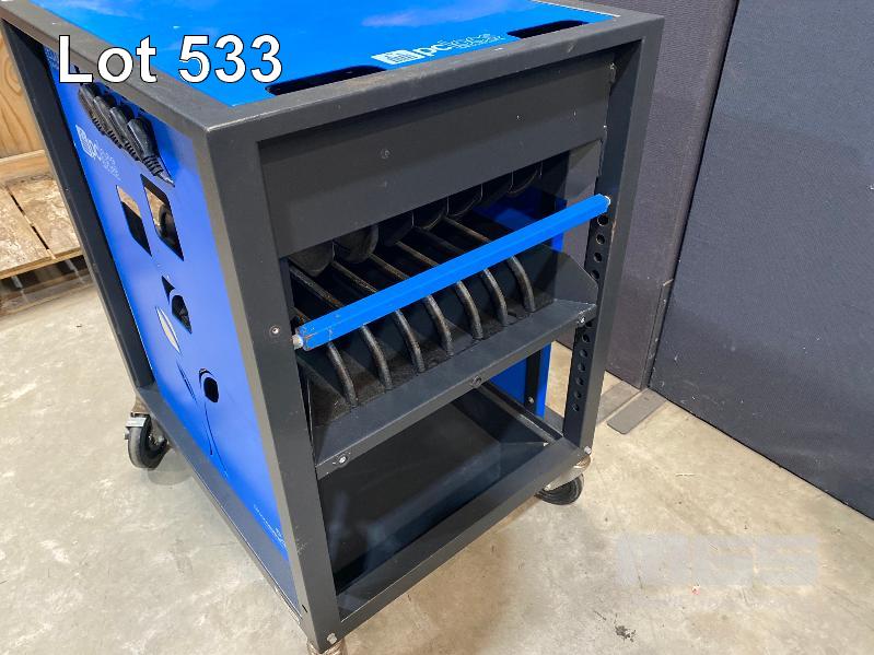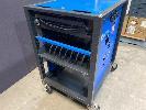 PC LOCS REVOLUTION ECO 16 BAY LAPTOP TROLLEY, STEEL FRAME WITH POWER BOARDS (BLUE), 90 x 74 x 60cm (NO KEY FOR TOP PANEL)