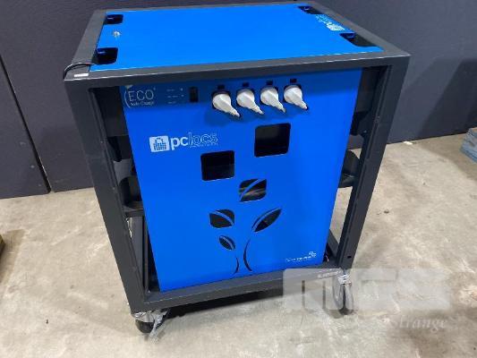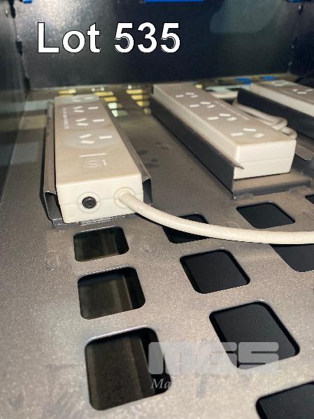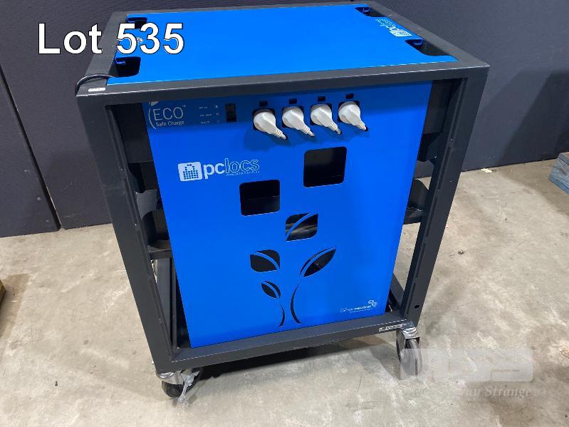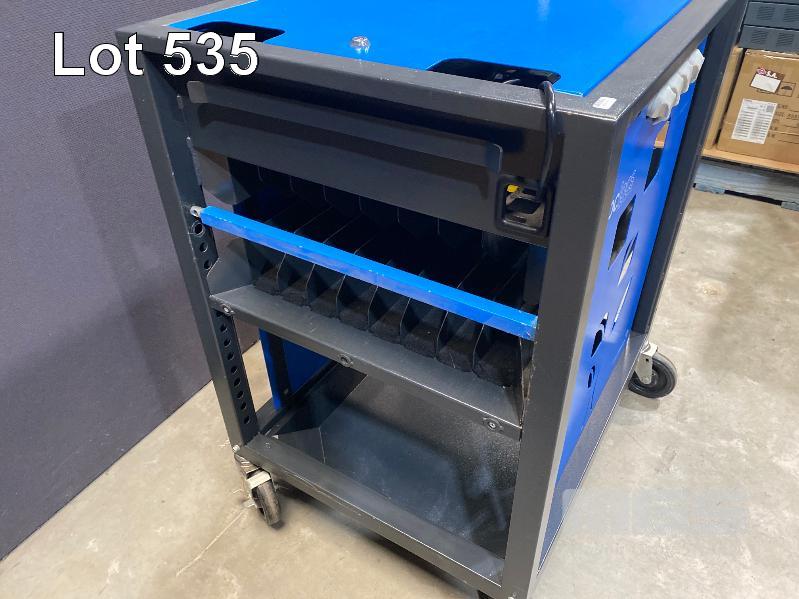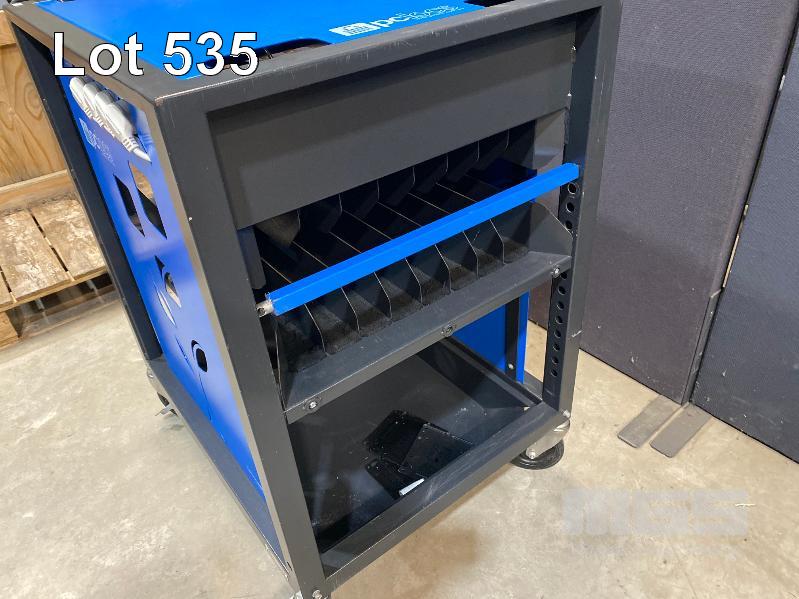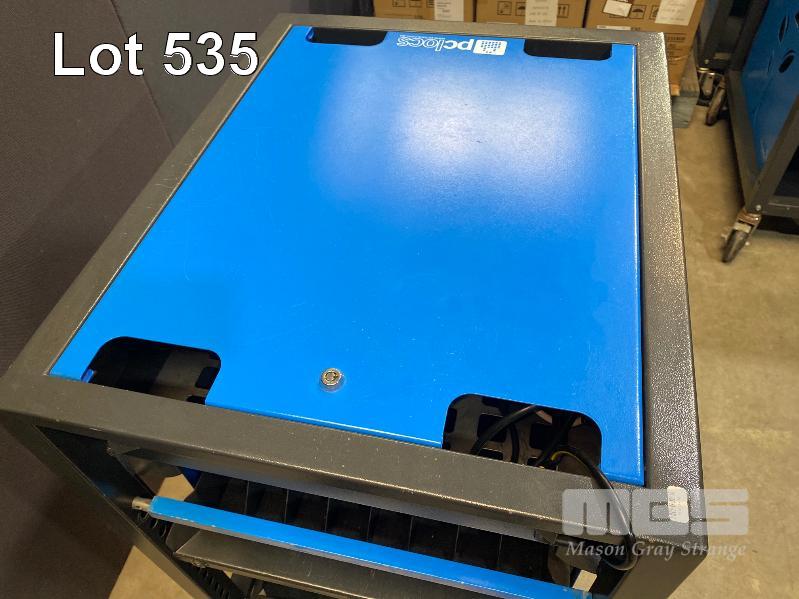 PC LOCS REVOLUTION ECO 16 BAY LAPTOP TROLLEY, STEEL FRAME WITH POWER BOARDS (BLUE), 90 x 74 x 60cm (NO KEY FOR TOP PANEL)