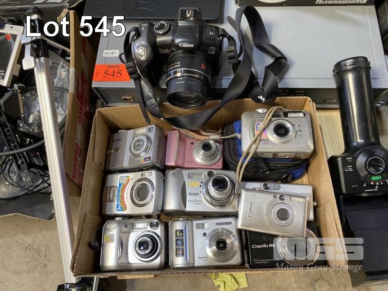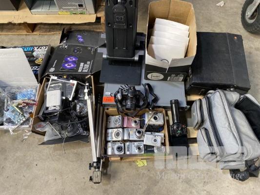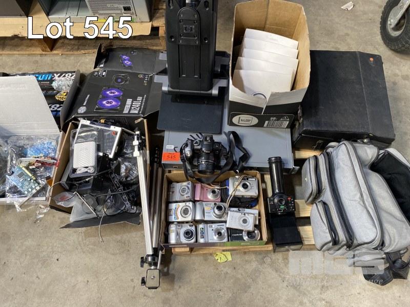 QTY ASST DIGITAL STILL CAMERAS, CAMERA BAG, CISCO ACCESS POINTS, HP MONITOR STANDS ETC