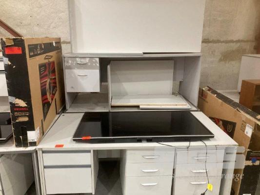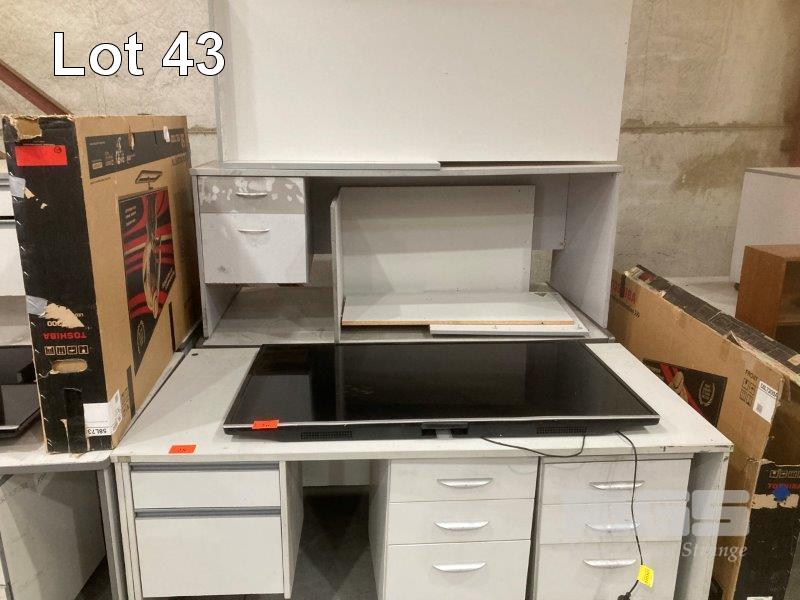3 x DESKS & 2 x MOBILES, GREY LAMINATE