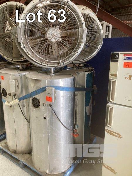 2 x MISTING FANS, OZMAST CANCOOLO8 60cm FAN, APPROX 200 LITRE, 240V