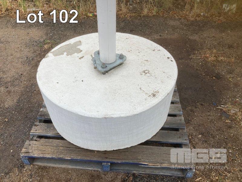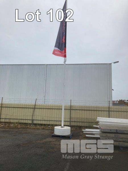4 x RELOCATABLE FLAG POLES, FORMENTA, 8.9m FIBREGLASS CONSTRUCTION, TILTING HINGE BASE (NO PINS) MOUNTED ON CONCRETE BLOCK (DISMANTLED)