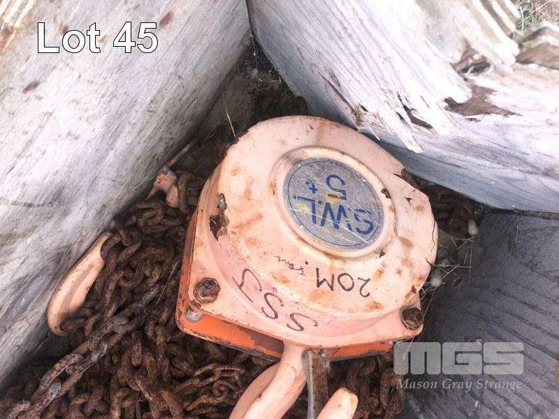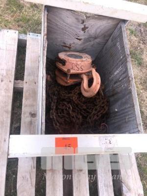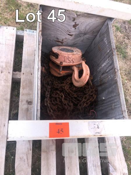 CHAIN BLOCK, 20m, 5000kg & PALLET AUTO PARTS, JACKS, ETC, 1 x PALLET