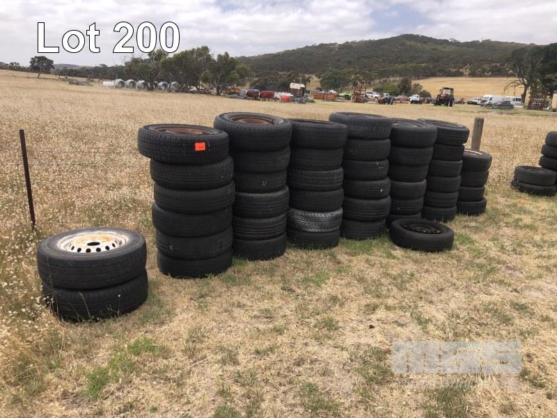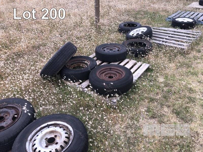 7 x STACKS ASSORTED PALLETS TYRES & RIMS