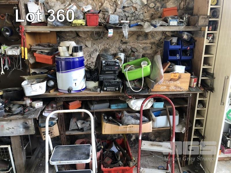 RADIOS, GRAB KITS, PARTS, ETC, CONTENTS SHELVES