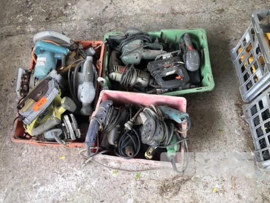 3 x TUBS ASSORTED POWER TOOLS, SAWS, DRILLS, SANDERS, PLANER, ETC