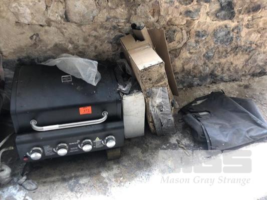 4 BURNER HOODED BBQ, STAND & COVER, NEW
