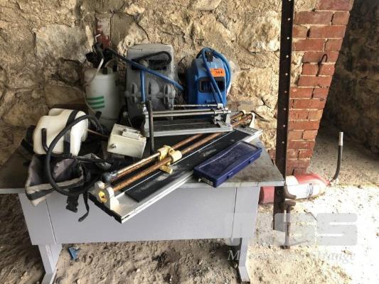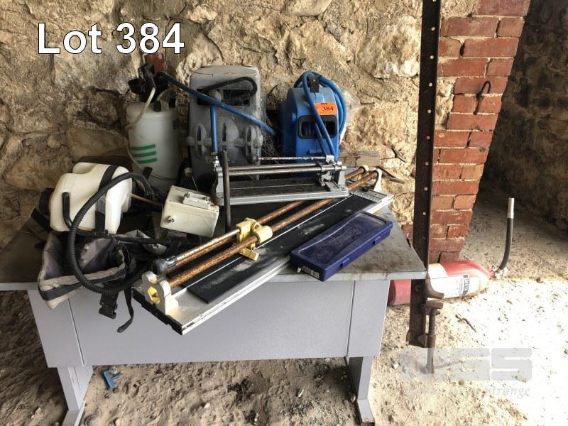 2 x AIRLINE REELS, TILE CUTTER, SPRAYER, ETC