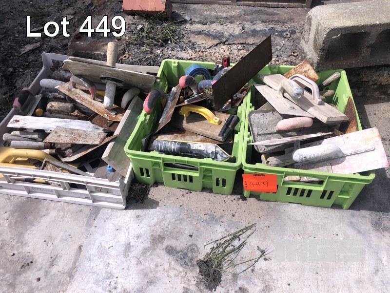 3 x CRATES PLASTERS TOOLS, TROWELS, ETC