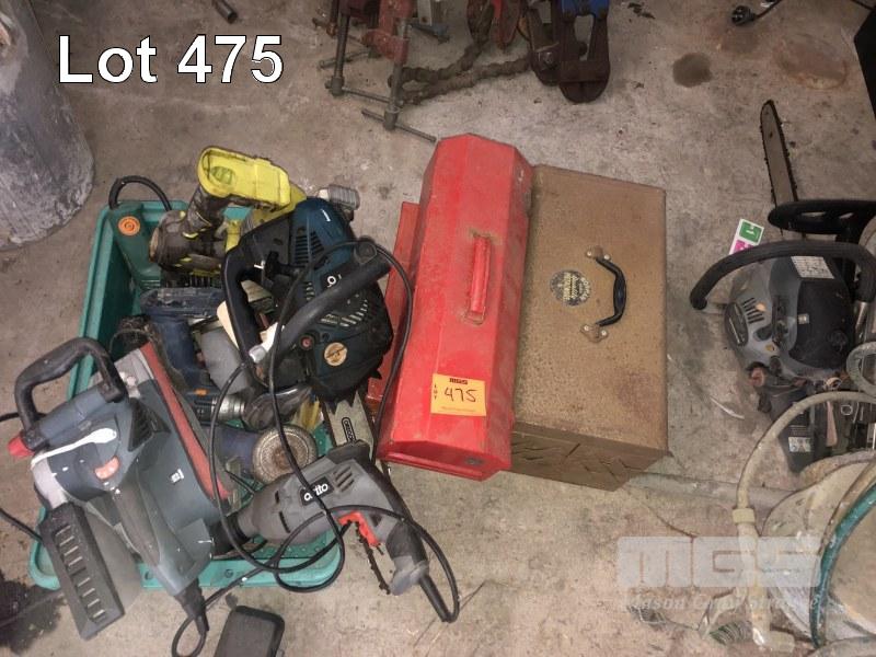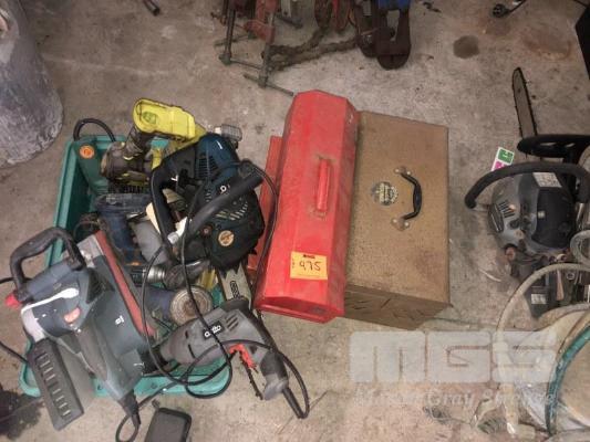 BELT SANDER, DRILLS, 3 x TOOL BOXES & CONTENTS