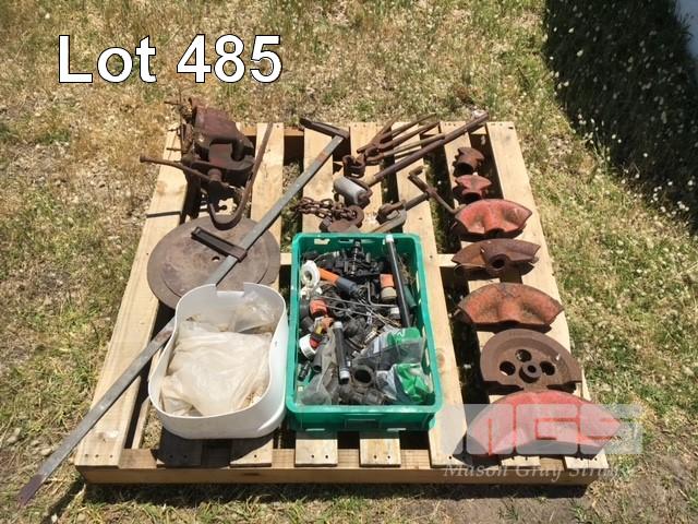 PIPE BENDING DIES, FARMERS VICE, BLACKSMITH TOOL, ASSORTED PLUMBING FITTINGS