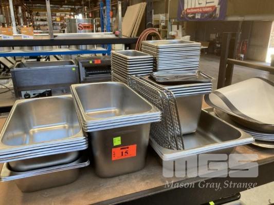 50 x STAINLESS STEEL FULL SIZE GASTRONORM PANS, ASSORTED SIZES