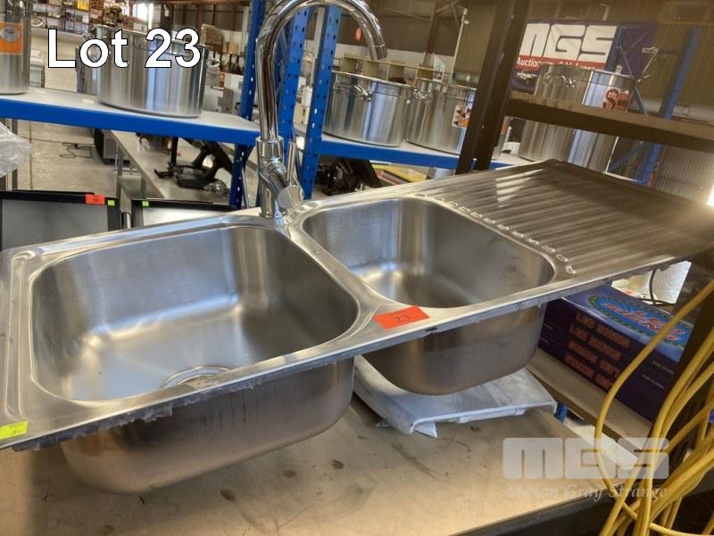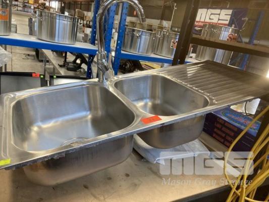 STAINLESS STEEL 1 1/2 BOWL KITCHEN SINK, 108 x 48cm & MIXER TAP
