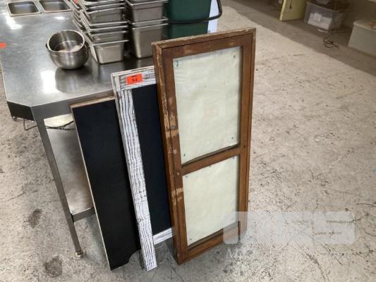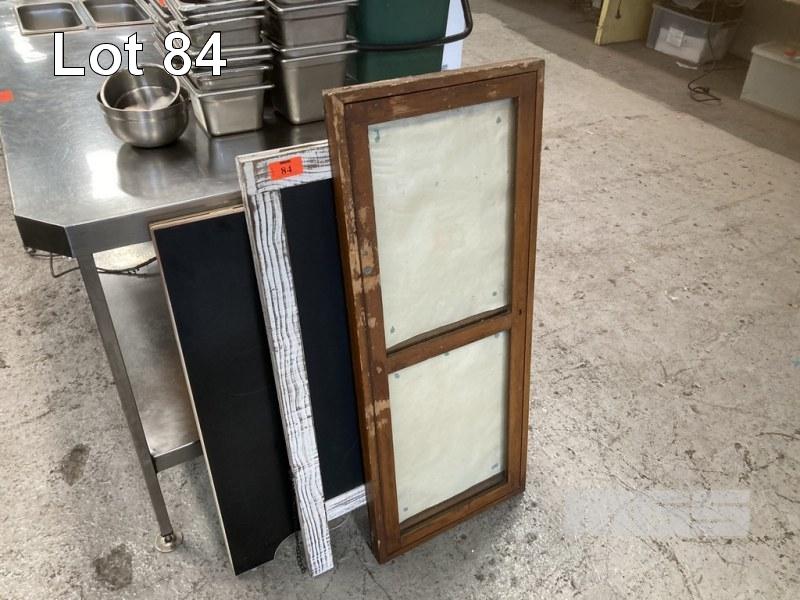 2 x ASSORTED A FRAME SIGNBOARDS & DISPLAY CABINET ( NO KEY )