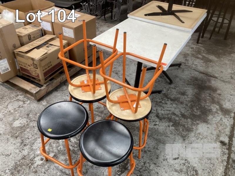3 x CAFE TABLES, 70 x 70cm, MOULDED TOP & 6 x LOWLINE STOOLS