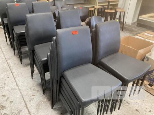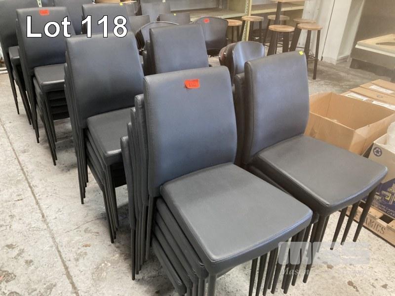 20 x DINING CHAIRS, BLACK VINYL, STEEL FRAME