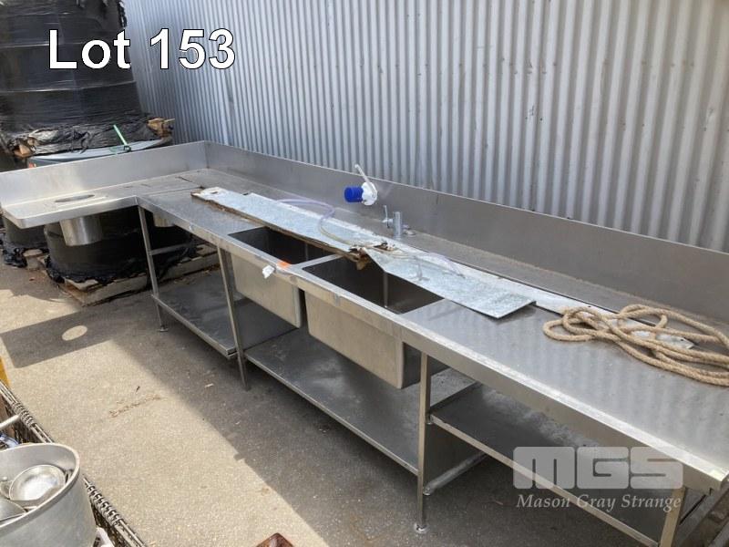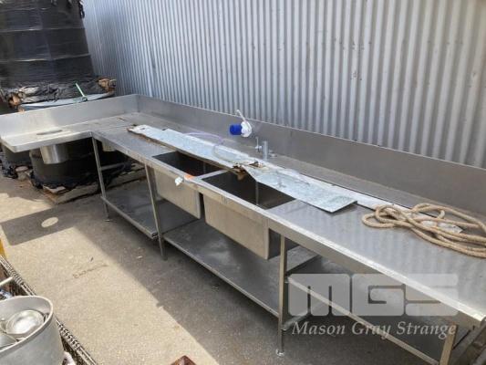 STAINLESS STEEL LHS TWIN BOWL DISHWASHING BENCH, L-SHAPE, 390 x 140cm
