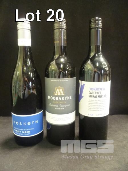 1 X BOTTLE OF VINTAGE 2019, MOORAKYNE, CABERNET SAUVIGNON, COONAWARRA 1 X BOTTLE OF HESKETH, PINOT NOIR, LIMESTONE COAST 1 X BOTTLE OF CABERNET, SHIRAZ, MERLOT, COONAWARRA
