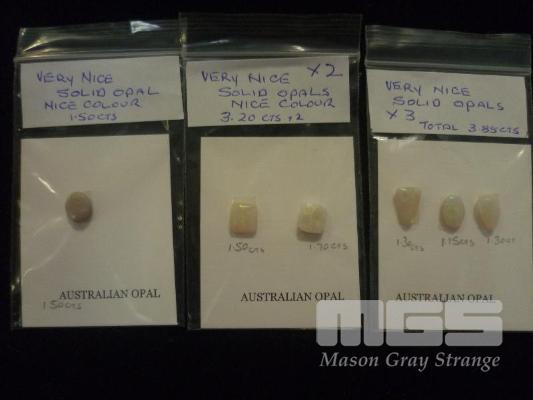 6 X SOLID OPALS, 1.30 cts, 1.15 cts, 1.30 cts, 1.50 cts, 1.70 cts, 1.50 cts
