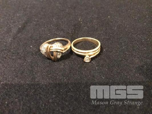 2 X GOLD RINGS, HEART SHAPED WITH DIAMOND CHIPS 9CT, 6 GMS TOTAL