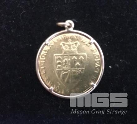 1787 22 CT GOLD PENDANT, KING GEORGE 3RD GOLD GUINEA COIN, APPROX 8gm, TOTAL WEIGHT 9.4 GMS