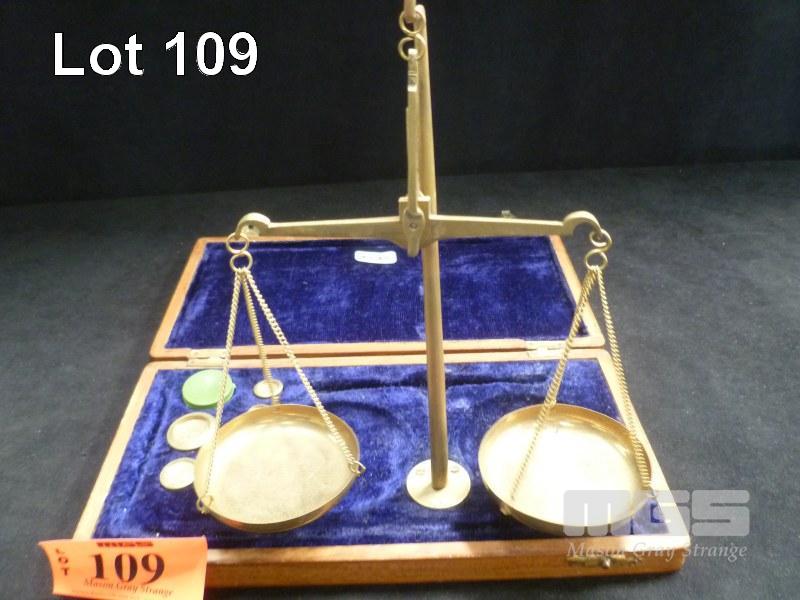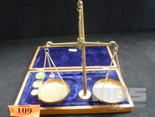 SET VINTAGE BRASS SCALES IN CARRY CASE