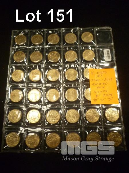 32 X AUSTRALIA, COMMEMORATIVE, $1 COINS, INC; 4 X SETS OF 'A' 'U' 'S' STAMPED COINS, ANZAC COINS, 5 X 2014, 3 X 2015, 4 X 2016, 4 X 2017, 4 X 2018