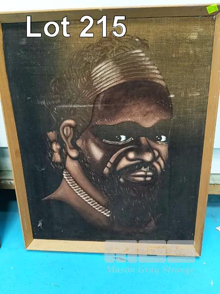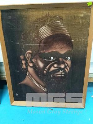 OIL PAINTING OF ABORIGINAL MAN ON BLACK FELT BY "W.W. BRUNOTTE"