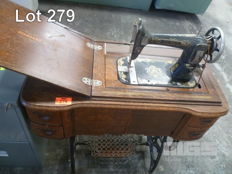 VINTAGE BEAL SEWING MACHINE IN SEWING CABINET