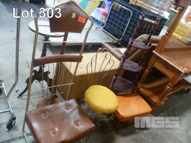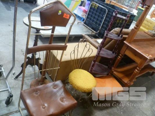 VALET CHAIR, DRESSER CHAIR, WHATNOT & ORANGE VINYL FOOT REST