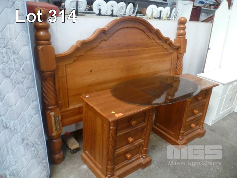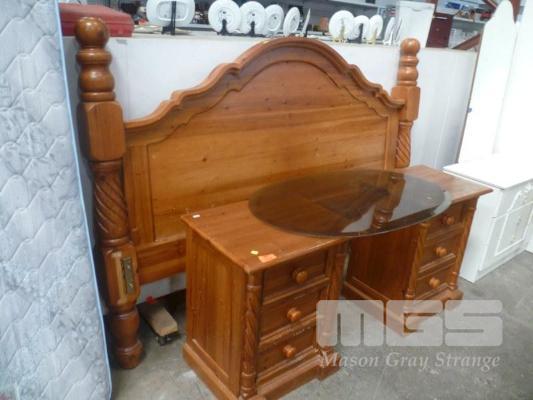 PAIR PINE BEDSIDE CABINETS & KING SIZE BED HEAD