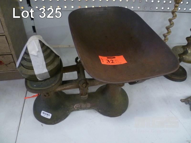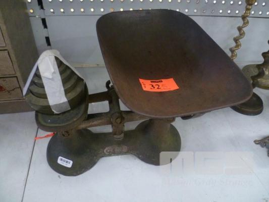 SET VINTAGE GCB BRASS SCALES WITH WEIGHTS