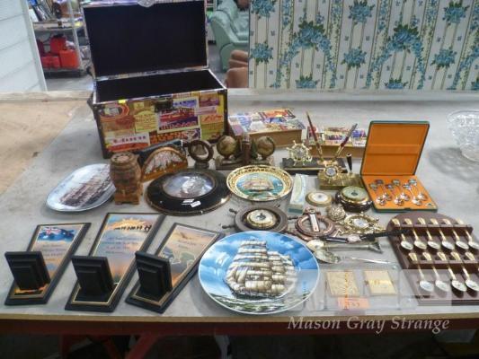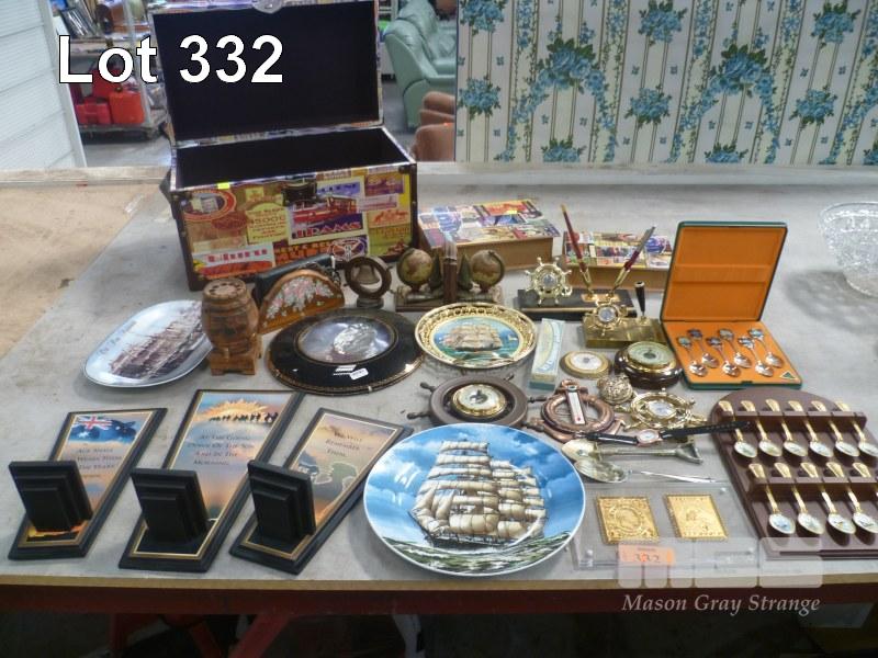 SOUVENIR SPOONS, BAROMETERS, BOOK ENDS DISPLAY PLATES, TIMBER CASES, ETC