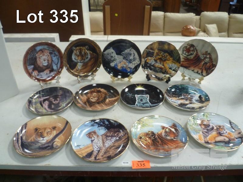 13 x ASSORTED BIG CAT FINE CHINA DISPLAY PLATES INC ROYAL DOULTON, NATIONAL WILDLIFE ASSOCIATION, FRANKLIN MINT, ETC