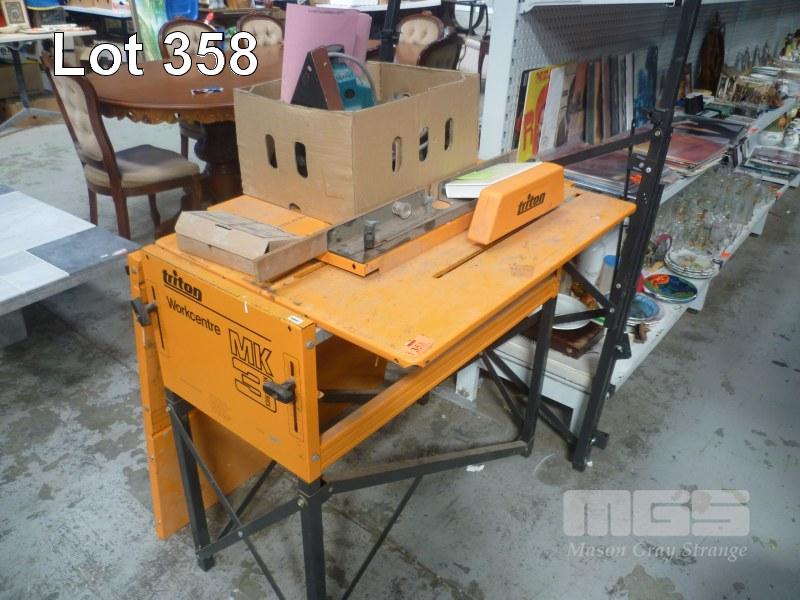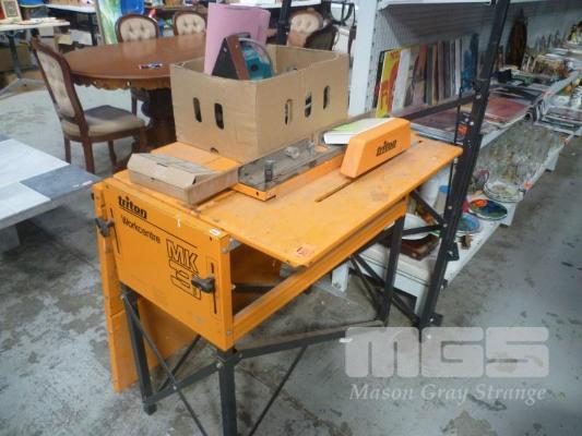 TRITON MK3 "NEW SERIES" WORK CENTRE WITH EXTENSION TABLE AND ROUTER ATTACHMENT. INCLUDES MAKITA ROUTER (MODEL: 36000BR)