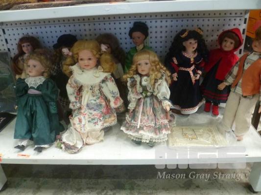 COLLECTION PORCELAIN DOLLS ON STANDS