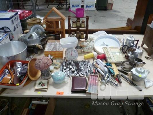 COOKWARE CUTLERY, UTENSILS, SPICE RACKS, COFFEE POTS, ETC