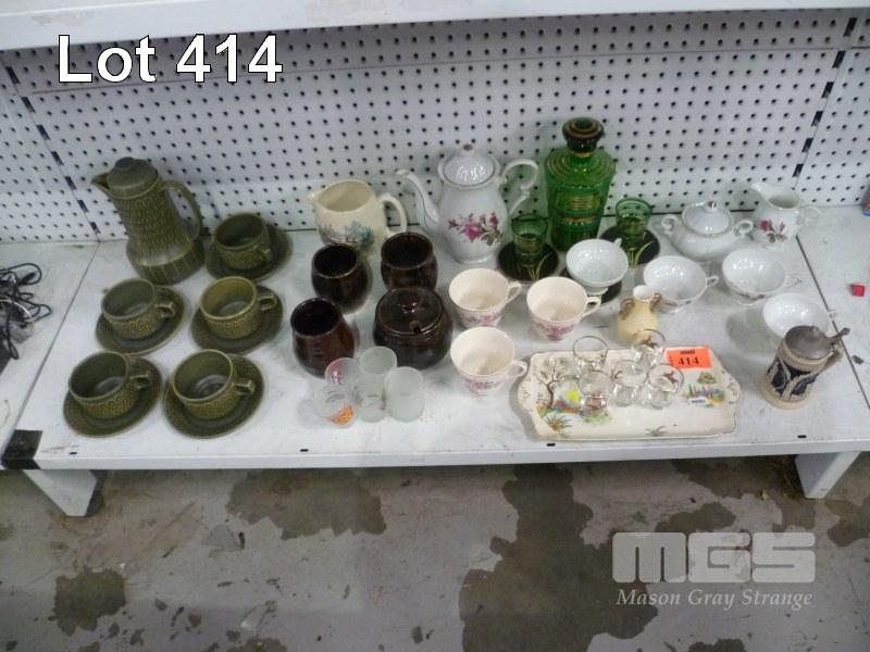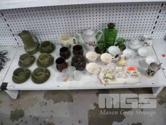WEDGWOOD COFFEE SET, ASSORTED CUPS, SHOT GLASSES, ETC