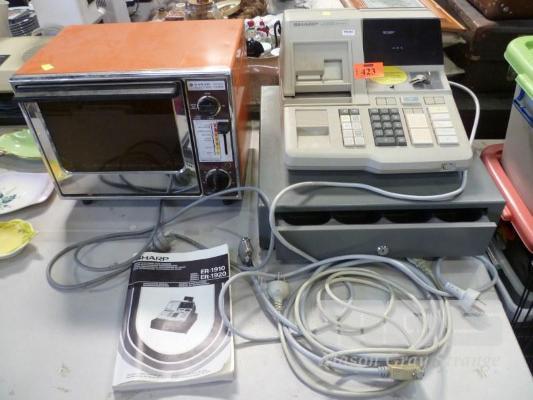 SHARP ELECTRONIC CASH REGISTER, ER-910 WITH INSTRUCTIONS & KEYS & SANYO ELECTRIC OVEN