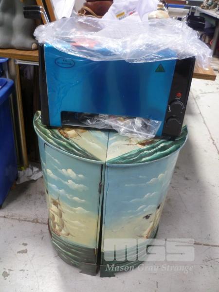 HAND PAINTED NAUTICLE SCENE, 2 PIECE CABINET, 2 DOOR CURVED FRONT WITH LA NOUVELLE VERTICLE GRILL TOASTER