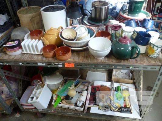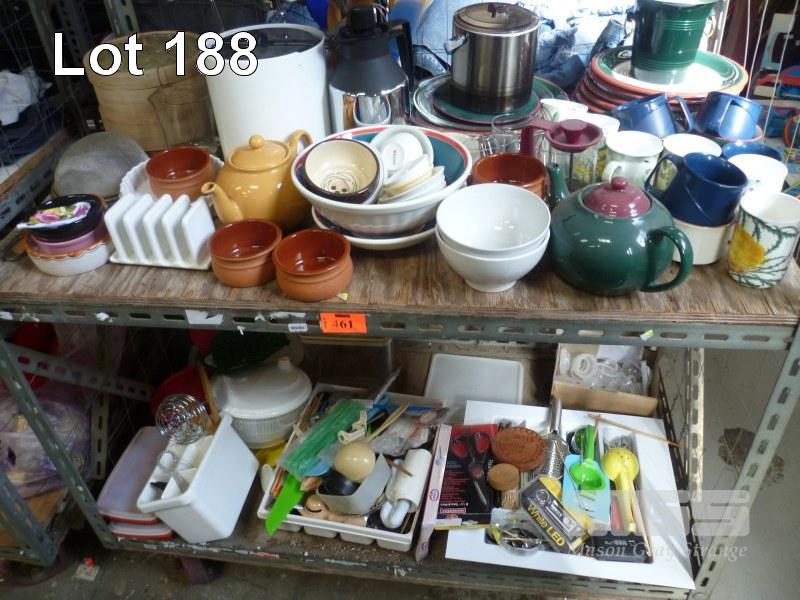 ASSORTED KITCHENWARE, DINNERWARE, CUTLERY, UTENSILS, ETC, 2 x BAYS