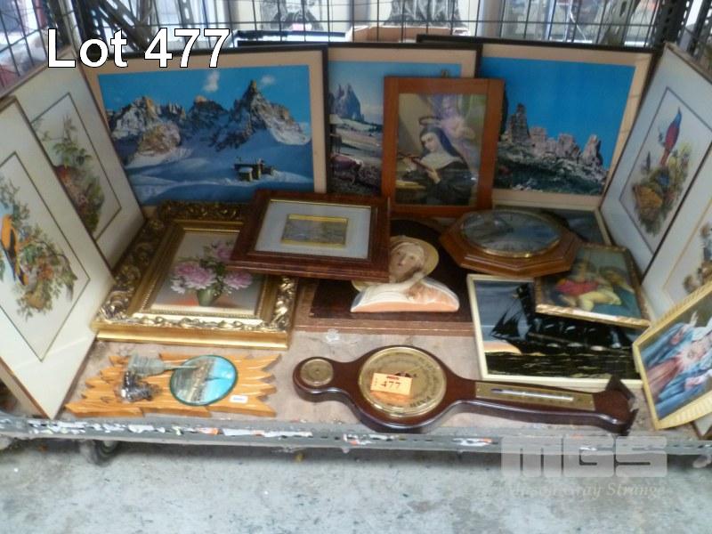 ASSORTED FRAMED PRINTS, WALL ART, BAROMETER, ETC