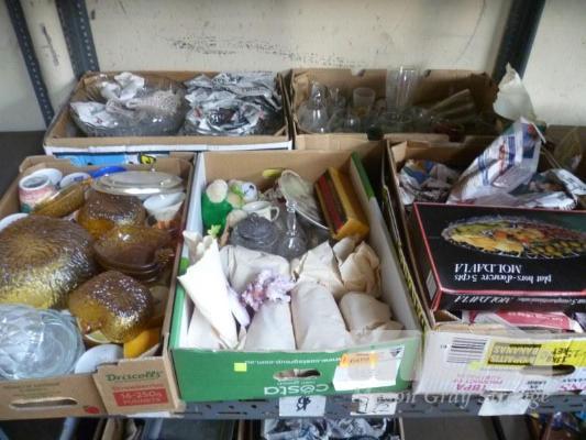 ASSORTED KITCHENWARE, AMBER GLASS, BOWLS, ETC, 5 x BOXES