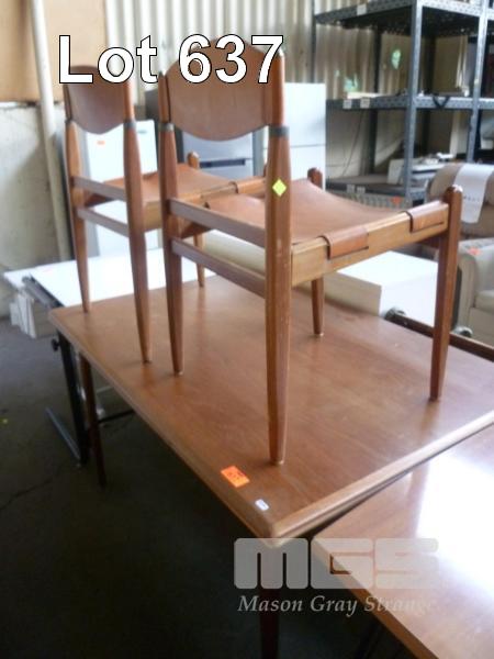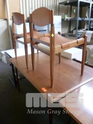 RETRO JARRAH EXPANDING DINING TABLE AND 2 x MATCHING LEATHER SLING SEAT DINING CHAIRS
