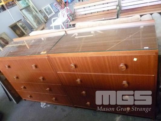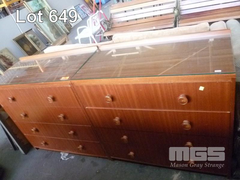 2 x MATCHING 4-DRAWER TEAK CHEST OF DRAWERS WITH GLASS TOPS