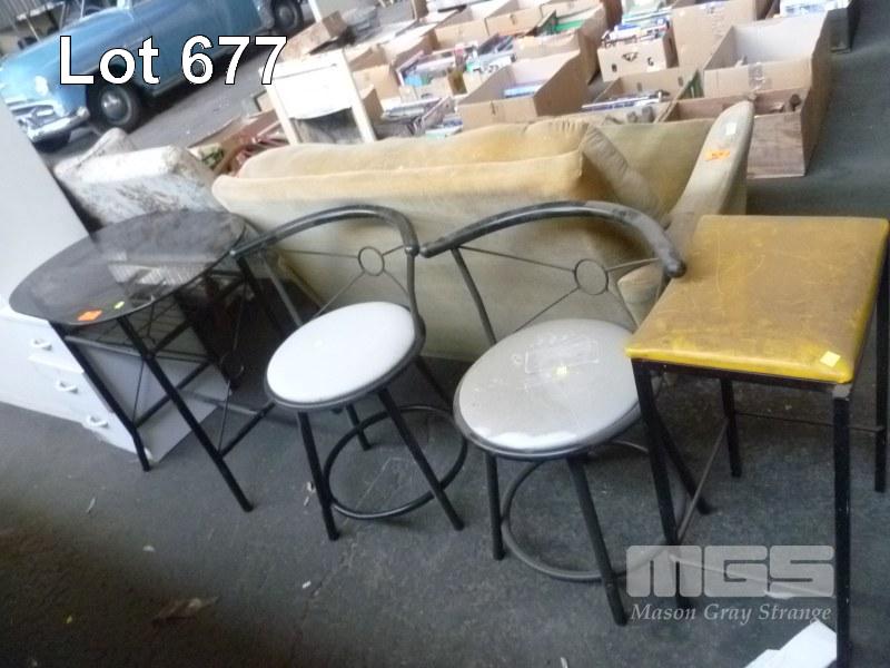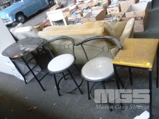 GLASS TOPPED SIDE TABLE & 3 x STOOLS