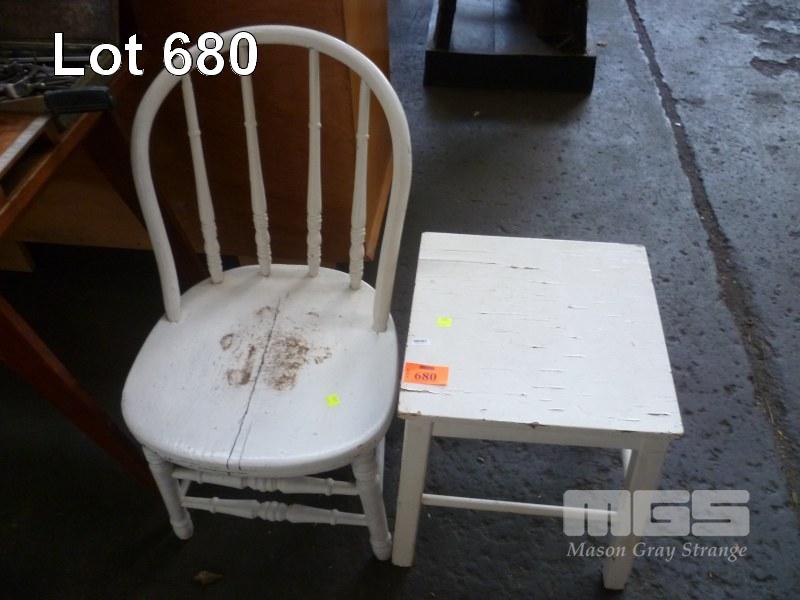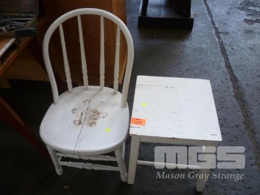 ANTIQUE SPINDLE BACK CHAIR AND TABLE