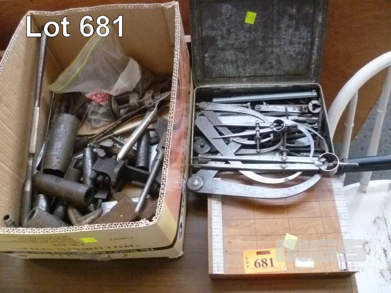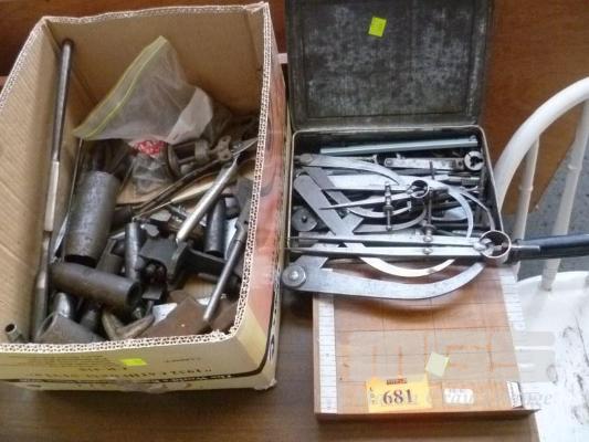 ASSORTED ANTIQUE MENSURATION TOOLS, TAPS AND DIES ETC